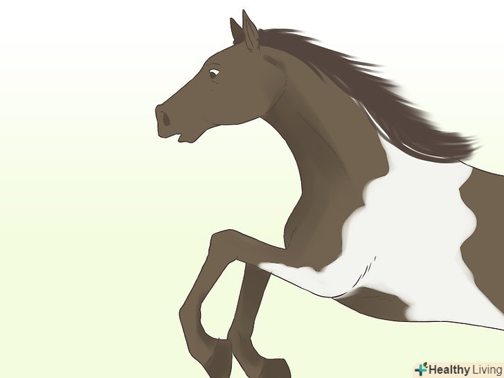 Поступово включіть в тренування галоп. якщо Кінь може бігти риссю протягом години без перерви, значить прийшов час спробувати легкий галоп. На пару секунд перейдіть з рисі в галоп, а потім знову поверніться до ходьби. Робіть так кожен день або через день, поступово збільшуючи час галопу через кожні пару тренувань. Може пройти кілька тижнів, перш ніж кінь зможе комфортно бігти галопом.- Приймайте положення сидіння в стрибку під час галопу, щоб зняти більшу частину вашої ваги зі спини коня і щоб тримати баланс.