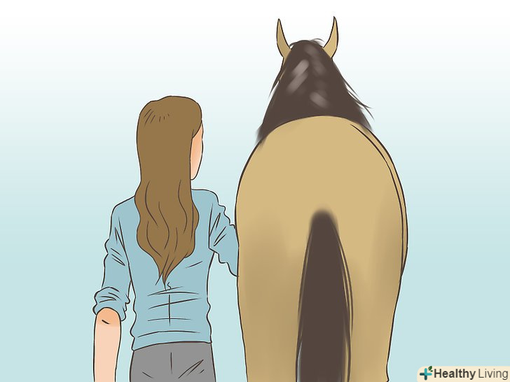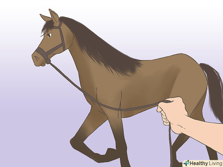 Щодня вигулюйте коня. влаштовуйте щоденні прогулянки протягом 10-20 хвилин. Ведіть коня по прямій, потім по колу, а потім вісімками, але дайте тварині простір для широкої дуги під час повороту. Якщо Кінь не була навчена або ж не хоче співпрацювати, то спочатку потрібно зосередитися на дресируванні. Коли тварина почне реагувати на ваші команди, збільште швидкість до швидкого кроку (але не рисі), щоб підвищити користь вправ.- Змінюйте напрямок і повороти, щоб кінь звикла йти у вас на поводу, а не за звичним маршрутом.
