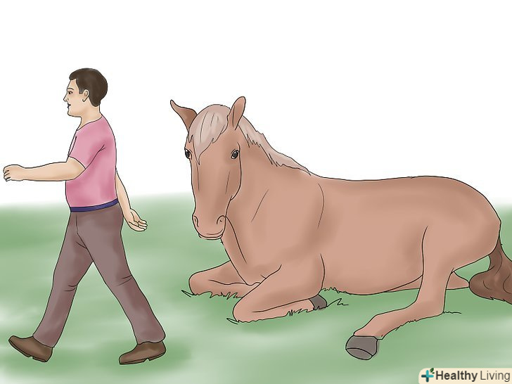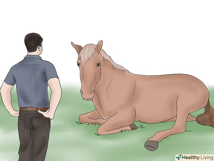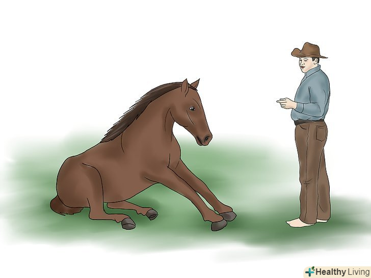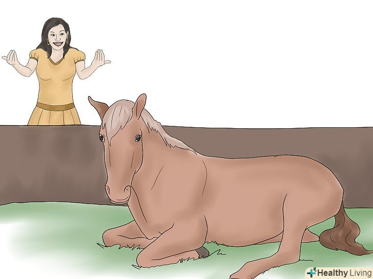 - Ваш кінь може не лягти з першого разу, так що не турбуйтеся. Але продовжуйте тільки якщо є якийсь прогрес, ваша кінь не противиться процесу і не поводиться нервово.