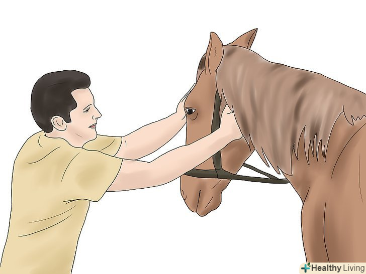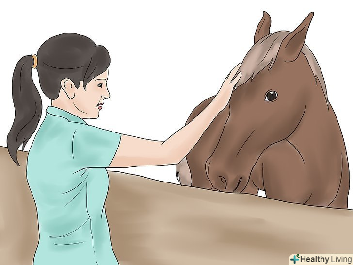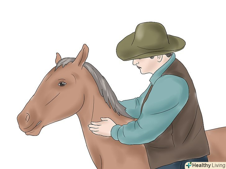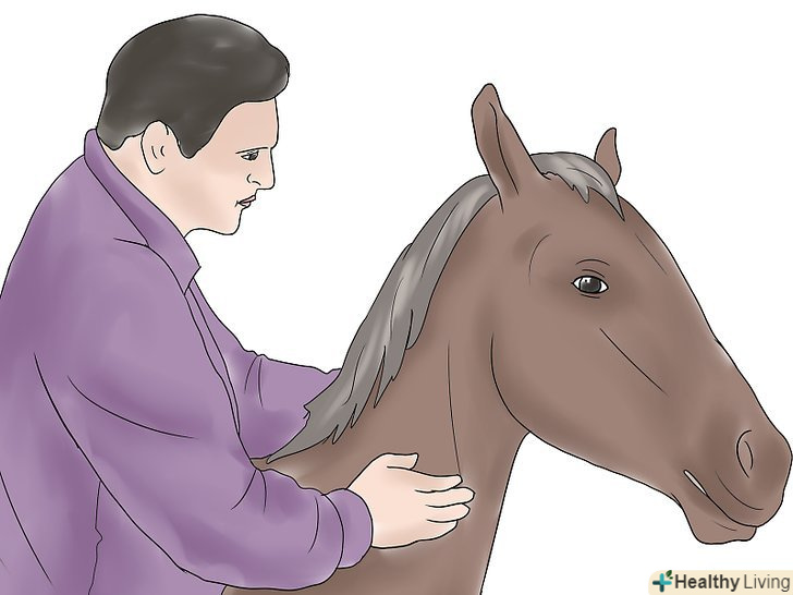 М'яко покладіть руки на шию коня і дозвольте коні лягти на шию за допомогою твердого натиску (але не змушуйте коня, так як вона буде реагувати і стане напруженою). у цей час ви можете дозволити коні відпочити, поклавши її голову між вашими колінами.
