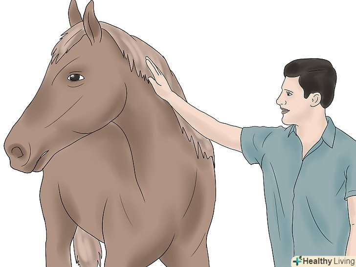 Перейдіть до плечей вашої коні і спокійно проведіть рукою по її голові і шиї. ви хочете запевнити коня, що їй не треба вставати або повністю перекочуватися. У цей час деякі коні будуть щасливі підкоритися, а деякі не дуже.