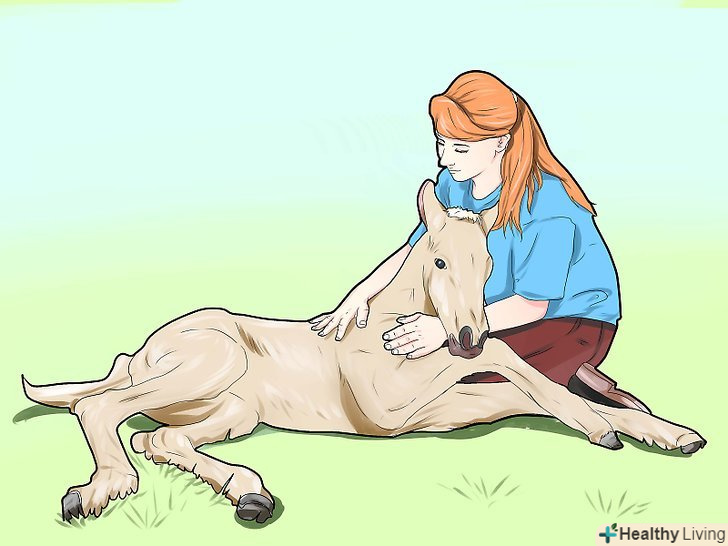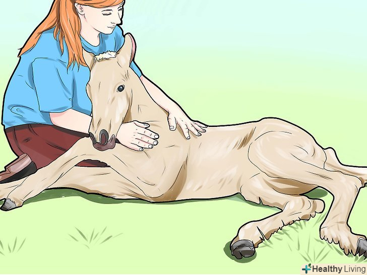 Почніть вигодовування. найважливішим питанням у догляді за новонародженим лошам є вигодовування, яке повинно початися відразу ж, коли лоша встане і почне триматися і ходити на своїх ногах (це може статися в період від 10 хвилин після народження до декількох годин).- Перше молоко кобили містить молозиво, багате антитілами, які потрібні лоша для розвитку сильного імунітету від поширених захворювань, якщо кобила регулярно прищеплювалася вакцинами до лошати.
