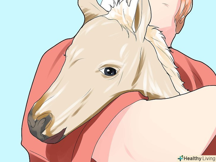 Почніть пестити лоша. почніть з погладжування по всьому тілу, дотиків до рота, носа, вух і т.д. Це початок побудови у лоша довіри до вас і встановлення з вами зв'язку, що буде корисно в довгостроковому плані.