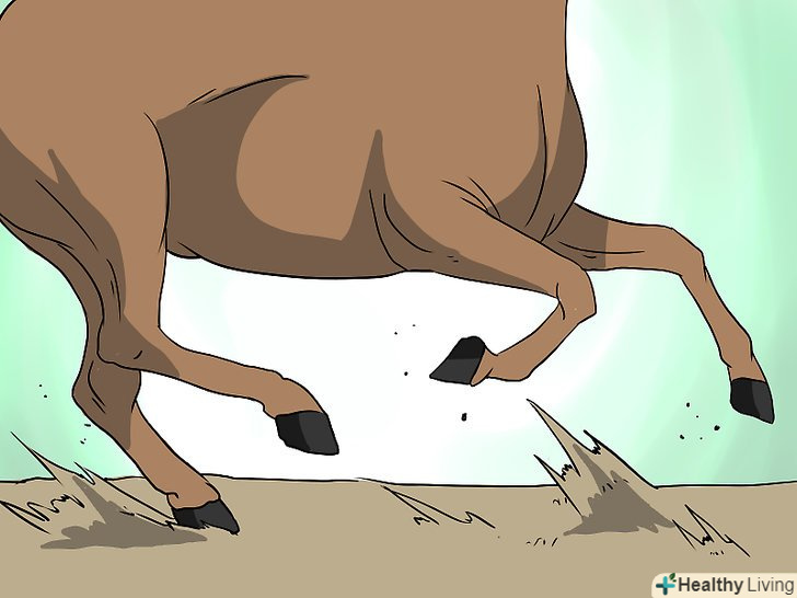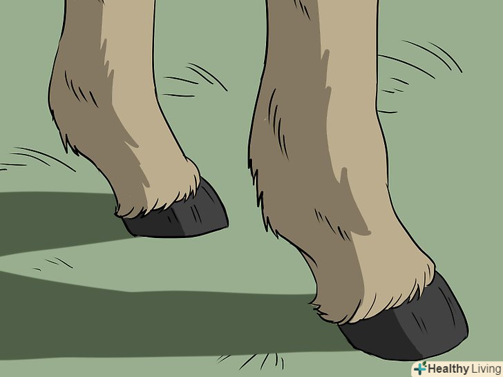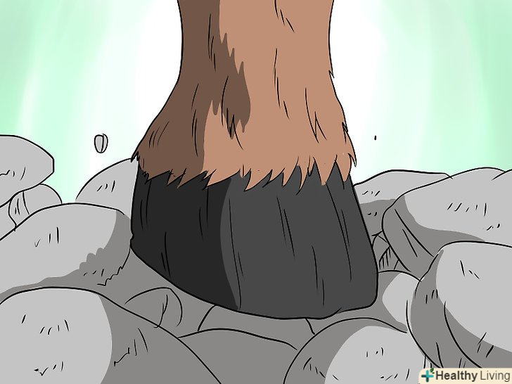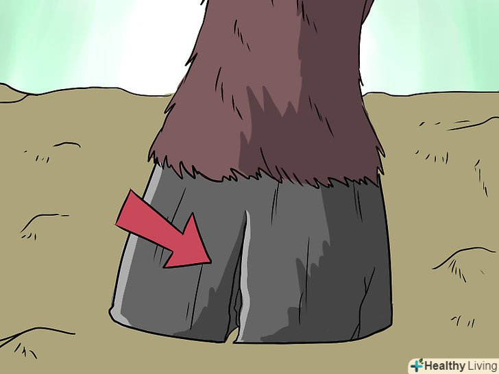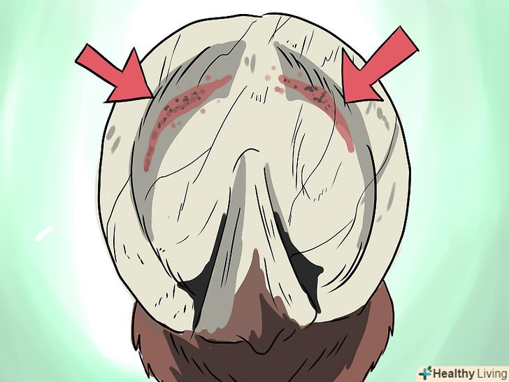 Перевірте копито на предмет надмірної стертості. власник Не підкованого коня повинен бути напоготові і стежити за ознаками стертості копит. Цими ознаками є відколи і тріщини на копиті від контакту з землею. [3] ознаки надмірної зношеності копит:- Більше 50% поверхні копита подряпана.