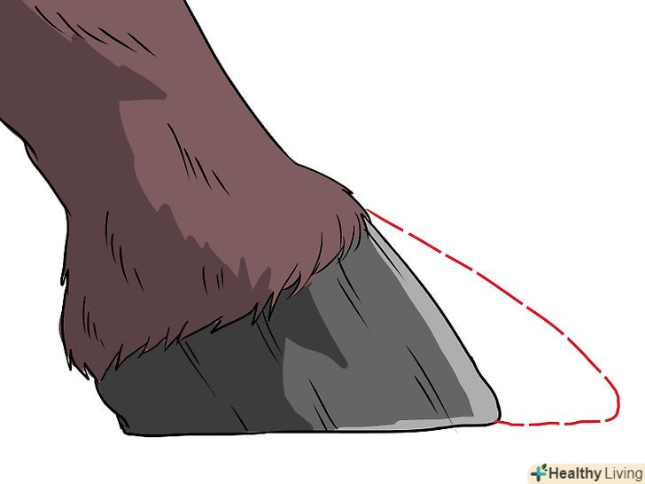 Зверніть увагу, якщо передня частина копита росте швидше, ніж задня частина копита. деякі частини копита ростуть швидше, ніж інші. Якщо передня частина росте швидше, то кут непідкованого копита змінюється і переносить вагу на задню частину копита. М'якоть копита стикається з землею, що заподіює коні біль при кожному кроці. У коней з подібною проблемою, копита довші і витягнуті, а не вертикальні і короткі.- Якщо ви підковуєте коня з такими копитами, то ви захищаєте м'якоть копита від зіткнення з землею. Тепер, коли Кінь робить крок, то ніжна частина копита не стикається з землею, а Кінь позбавляється від болю.
