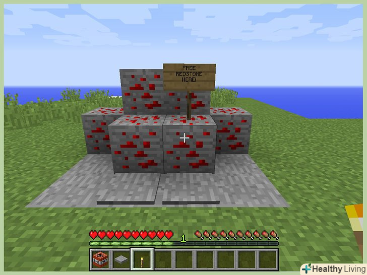 - Щоб замаскувати пастку, не ставте знаки з абсурдними оголошеннями, наприклад, «безкоштовні діаманти». Тільки нуби ведуться на таке! Замість цього побудуйте незахищений будинок з сундуками-це відмінний спосіб помститися комусь. Поставте знак»червоний камінь".