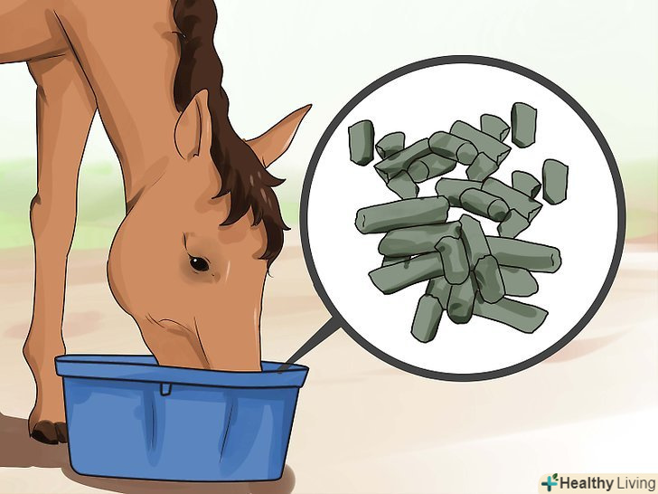 Згодуйте коні препарат. Запропонуйте коні зерно, змішане з гранульованим глистогінним засобом. Простежте за тим, щоб вона з'їла всю порцію їжі, щоб переконатися в тому, що вона отримала свої ліки. Якщо Кінь відмовиться їсти зерно з гранулами, додайте в нього трохи чорної патоки, щоб спонукати тварину закінчити трапезу. [15]- Якщо ви плануєте годувати коня сіном, почекайте, поки вона повністю не з'їсть суміш зерна з гранулами.