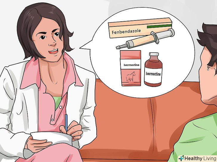 Поговоріть з ветеринаром про різні глистогінних препаратах. Ветеринар обговорить з вами різні антигельмінтні засоби. До них відносять фенбендазол, івермектин, моксидектин, Пірантел і празиквантел. Так як кожен з препаратів володіє різним спектром дії, ветеринар сам вирішить, який з них найкраще підійде вашої коні. [5] нижче можна ознайомитися зі спректром дії різних груп антигельмінтних засобів. [6]- Засоби на основі бензимідазолу (такі як фенбендазол), на відміну від інших препаратів, знищують яйця нематод і випускаються у вигляді гранул, пасти і суспензії. Зазвичай дані кошти застосовують протягом декількох днів поспіль.