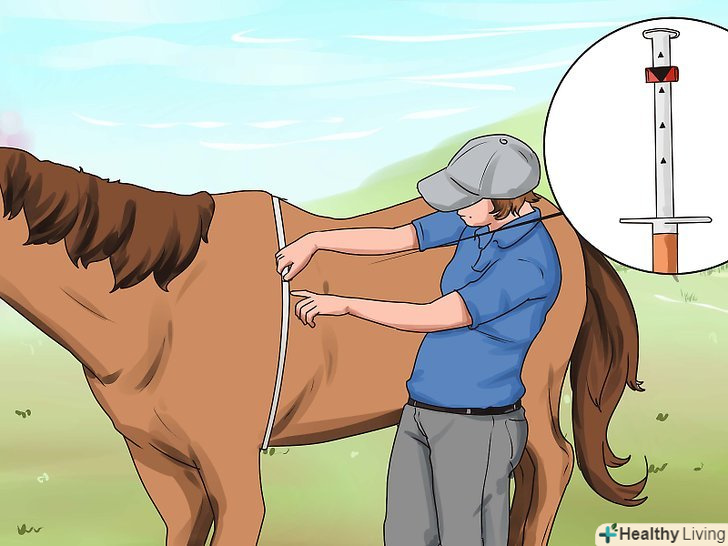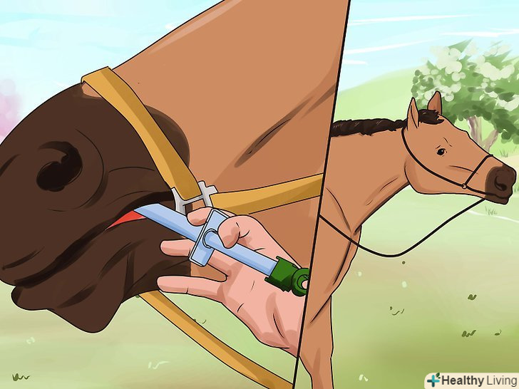 Визначте правильне дозування для свого коня. Вам необхідно знати вагу коня, так як на його підставі ветеринар визначає дозування антигельмінтних засобів. При недостатньому дозуванні лікування не буде ефективним і може привести до розвитку стійкості паразитів. У більшості випадків антигельмінтні засоби безпечні, тому краще перевищити дозу, ніж зробити її недостатньою, особливо в тому випадку, коли Кінь не любить приймати глистогінні препарати і схильна спльовувати їх. Будьте готові дати тварині велику дозу на той випадок, якщо Кінь виплюне частину кошти. [7]- Знайте, що в більшості випадків дозувальні шприци містять достатню кількість глистогінного препарату для коней вагою 500 кг.якщо у вас особливо велика кінь, вам можуть знадобитися відразу два шприца із засобом. Деякі ветеринари пропонують збільшувати розрахункову дозу препарату на одне додаткове розподіл дозувального шприца (враховувати зайву сотню кілограм ваги тварини) незалежно від фактичних розмірів коня. [8]