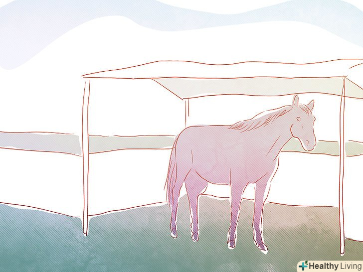 Обладнайте землі, побудуйте стійла, налагодьте водопостачання, встановіть зовнішні навіси (для коней на пасовище) і будь-які інші предмети першої необхідності.- Наявність даху має важливе значення для жарких сонячних днів у теплу пору року. Якщо ви покладаєтеся на тінь дерев, переконайтеся, що вони не отруйні. Дерева також потребують захисту від жування, в тому числі видалення жованих ділянок, щоб запобігти інфекції. Тінисте стійло повинно бути побудовано на пасовищі, де не вистачає в тіні дерев. Це може бути також просто, як звичайна висока дах на чотирьох стовпах або Тристороннє стійло. Це буде коштувати зовсім недорого.