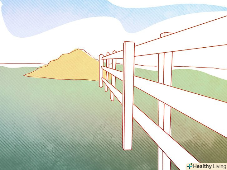 Забезпечте свою ділянку хорошим огорожею. це надзвичайно важливо, тому що вам явно не потрібно, щоб ваші коні тікали або отримували травму на огорожі. Скупитися тут не потрібно, тому що травми і втрати можуть спричинити набагато більші витрати, ніж ви витратите на початку на хороше огорожу.- Кращі огорожі - високі, товсті з широкою перешкодою і дерев'яним парканом перед ним. Однак, оскільки більшість людей не має часу, щоб зробити огорожу хорошої якості, дерев'яний паркан буде відмінною заміною, нітрохи не гірше металевих прутів. Дерев'яні паркани бувають багатьох видів, таких як post-board, post-rail і т.д., і повинні охоронятися. Використання деревини, яка не отруйна і міцна, продовжить життя паркану до 15 - 20 років, за умови хорошого догляду. Фокус в тому, що його можуть атакувати жуки-бурильники, а нудьгуючим коням подобається паркан жувати. Слідкуйте за станом паркану і замінюйте ті ділянки, які постраждали від комах. Щоб відбити у коней полювання гризти огорожу, можна уздовж неї запустити електричний провід. Багато людей вдаються до вінілових покриттів білого кольору, що покривають деревину, тому що це вимагає менше технічного обслуговування.
