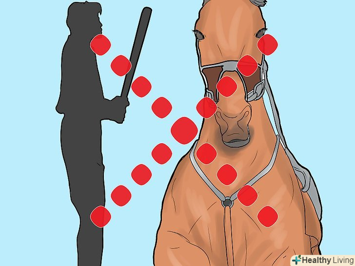 Також перевірте коня: чи не відчуває вона болю, так як це може бути причиною непередбачуваного поведінки коня. Проведіть рукою по всьому тілу коня і, якщо вона подає сигнали болю, покажіть її ветеринару, щоб він її перевірив.