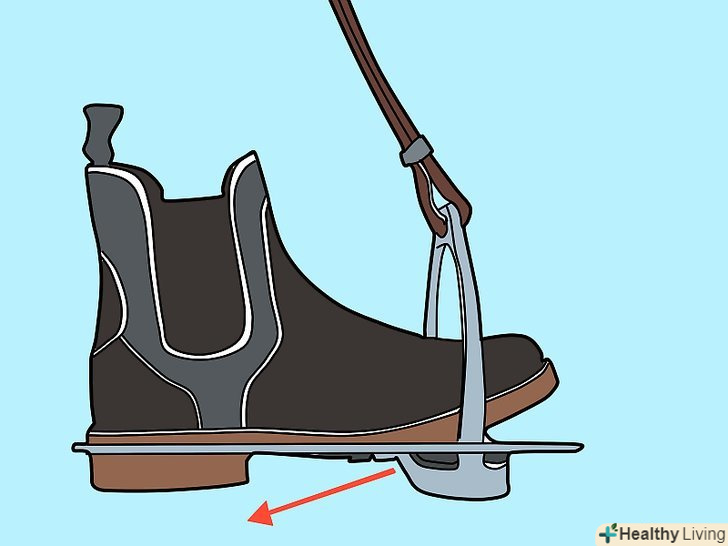 - Коли ви їдете верхи, ви повинні обов'язково їздити зі стременами, у яких є гумові підкладки для ніг. Так ви убезпечите себе від травм ніг, якщо будете падати і ноги не будуть ковзати, коли ви будете сідати на коня.