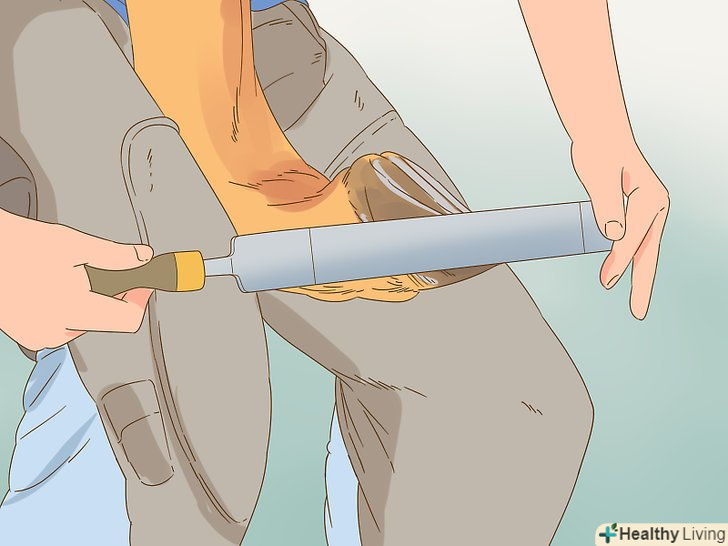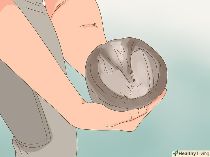 Прийміть правильне положення для роботи. правильна поза при розчищенні копит коня забезпечить вам і тварині більший комфорт під час даної процедури. Якщо ви будете правильно тримати копито, то його буде простіше контролювати і легше надати максимально рівну і правильну форму. Обов'язково приймайте правильне положення для того, щоб зайнятися розчищенням кінських копит. [6]- Передню ногу коня слід підняти і відвести назад у напрямку до її грудній клітці. Обіпріть її об своє стегно.