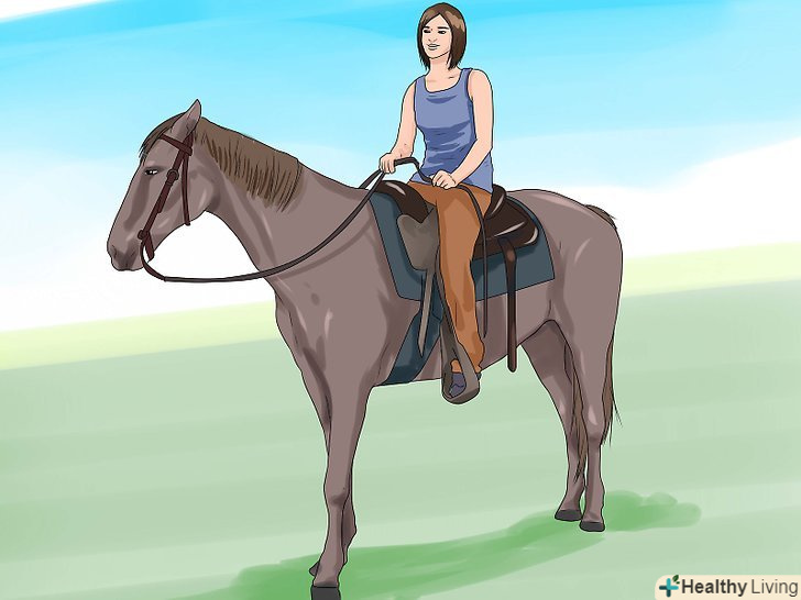 Посадка в сідло. Посадка на коня має на увазі спосіб піднімання їй на спину, щоб ви могли покататися верхи. Для цього вам знадобиться сідло, недоуздок і поводи. Традиційно посадка в сідло здійснюється з лівого боку. Вставте ліву ногу в стремено, утримуючи поводи лівою рукою. Правою рукою схопитеся за сідло і з легким стрибком перекиньте праву ногу через сідло. Вставте праву ногу в стремено і правильно візьміть поводи в руки.- Новачкам простіше сідати в сідло з якої-небудь підставки, наприклад, зі сходинки або чогось подібного.