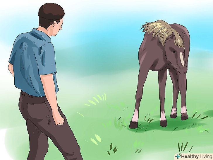 Створіть привабливі, а не вимогливі умови вашої присутності, перш ніж станете наближатися до коня. у взаєминах коней існують поняття тиску і свободи. Коні є стадними тваринами і, дуже ймовірно, вони не будуть чекати, коли ви зможете підійти до них. Просте встановлення візуального контакту вже починає надавати на коня тиск, підштовхуючи її до того, щоб втекти від вас.