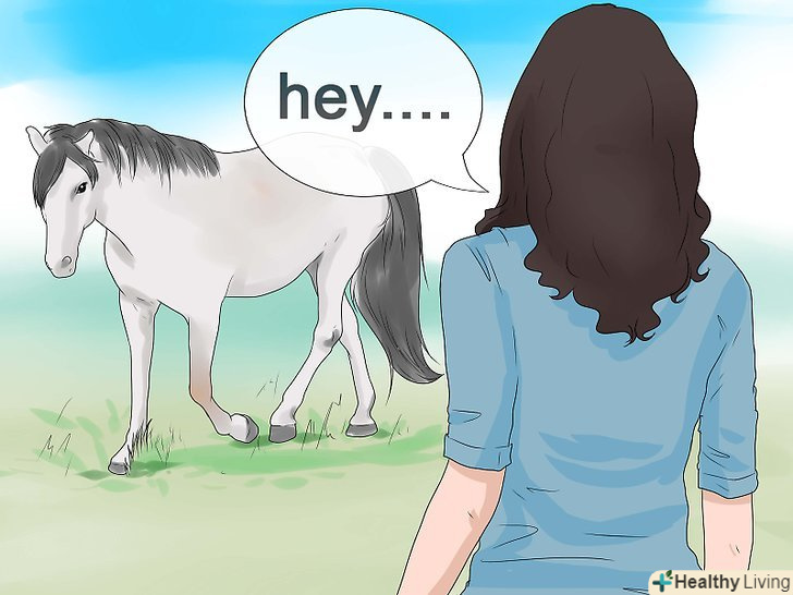 Використовуйте голос, щоб повідомити коня про своє наближення. для новачків верхової їзди постійна розмова досвідченого інструктора зі своїм конем може здатися дивним. Проте, він служить дуже важливої мети: постійно повідомляє тварині про те, де знаходиться людина. Коли ви наближаєтеся до коня, вам також слід Ласкаво з нею розмовляти. [5] ви можете говорити що завгодно, але використовувати виключно миролюбний рівний тон голосу. Однак, в більшості випадків наїзники кажуть щось такого змісту: "Гей, конячка, ти готова покататися?"- Ви повинні робити так незалежно від обраного напрямку наближення до Коня, але це стає критично необхідним , якщо ви наближаєтеся до неї не спереду. Так як Кінь може вас не відразу помітити, дуже важливо попередити її про своє наближення голосом.