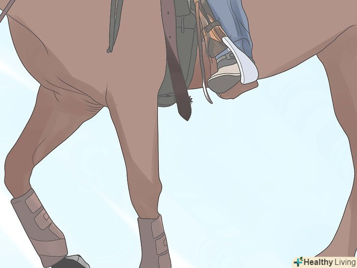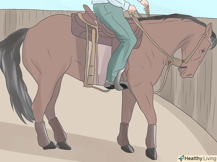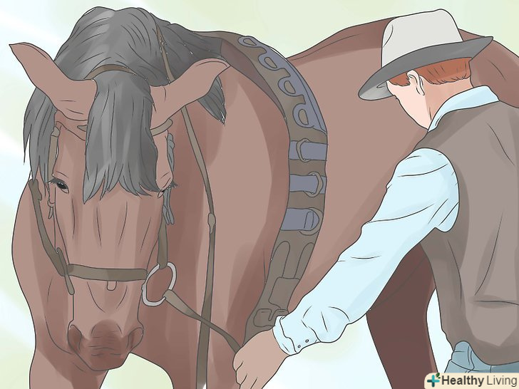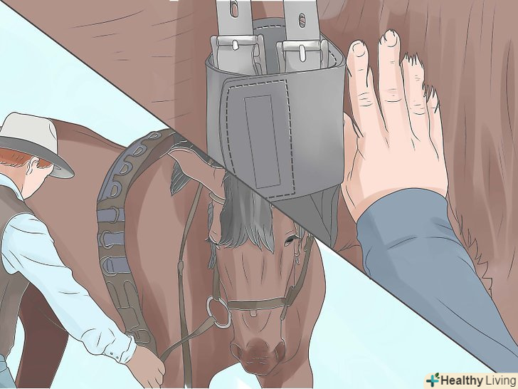 Протестуйте здатність коня цуратися від чиниться на неї тиску. у коня повинен бути вроджений інстинкт цуратися від чиниться тиску (аналогічний тому, який є у людей). Протестуйте дану реакцію коня, наклавши розкриту долоню (і натиснувши нею) в районі розташування підпруги там, де зазвичай тіла коня стосуються ікри ніг. Вона повинна отпрянуть від руки, ймовірно, вже відразу бічним кроком.- Якщо Кінь не реагує, продовжуйте тиснути ще сильніше. Як тільки кінь сторониться, приберіть руку і заохотити тварину.