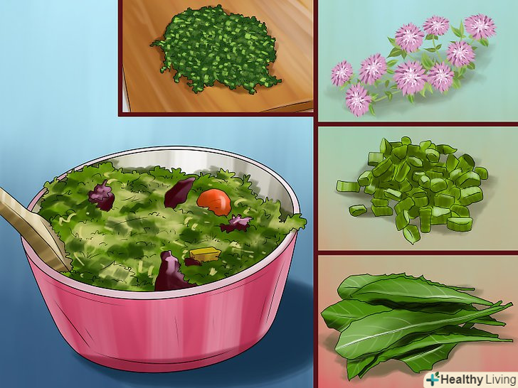Спробуйте приготувати корисний трав'яний салат. приготуйте для свого коня корисний і смачний салат із суміші різних трав. Для цього рецепта вам знадобиться 5 нарізаних кульбаб (після цвітіння і без коренів). Змішайте їх з двома пучками рихлокустовой або густої трави і двома пучками паростків пшениці.- Додайте 4 чашки молодого рожевого конюшини (в кольорі) і пучок рубаної петрушки.