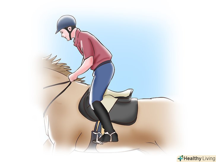 - Коли ви піднімаєтеся з сідла, нахиліться вперед під кутом 30 градусів. Це допоможе вам рухатися більш природно з конем, даючи їй краще скакати риссю. Єдиний виняток з цього полягає в об'їздці коней, коли плечі залишаються прямими по лінії стегон.