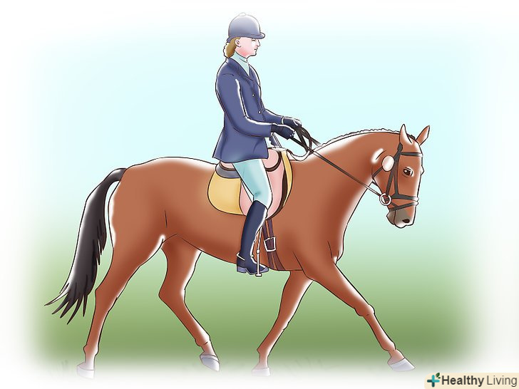 - Періодично кінь буде сповільнюватися або прискорюватися, бажаючи пройтися або поскакати галопом. Щоб припинити її спроби походити, злегка здавлюйте свої п'яти і ікри ніг, коли ви повертаєтеся в сідло після підйому, і клацайте своєю мовою. Щоб припинити її спроби поскакати галопом, дізнайтеся, коли вони починаються, щоб згладити Алюр коня в легкий галоп, або коли вона подовжує крок від затиснутою рисі. Як тільки ви це впізнаєте, дайте їй це зрозуміти, міцніше взявши віжки (тільки не сильно, не тягніть їх) і сядьте прямо, готуючись піднятися. Вона відчує зміну вашої пози і сповільнить хід.