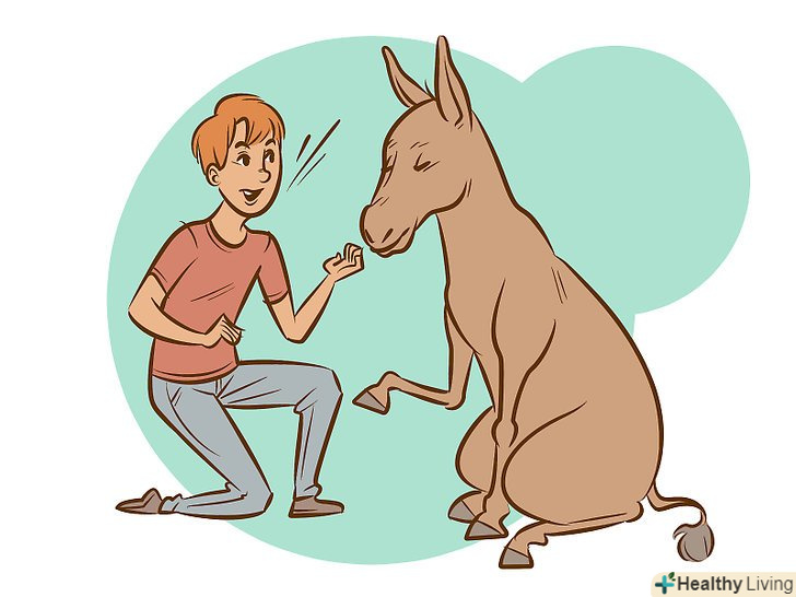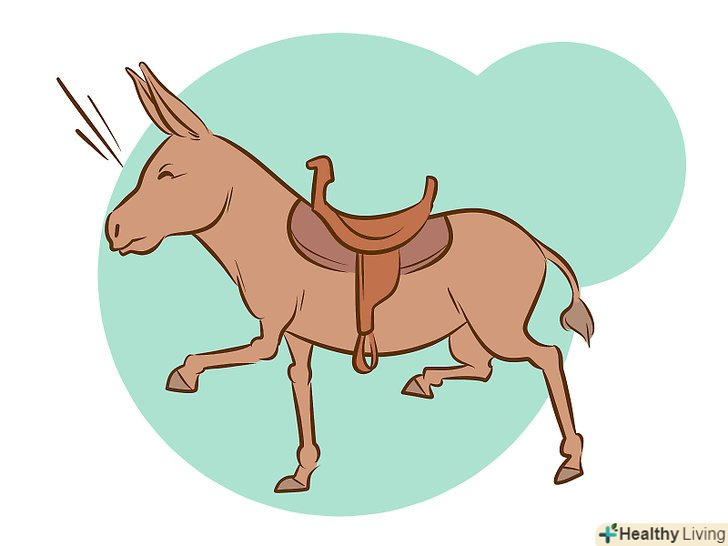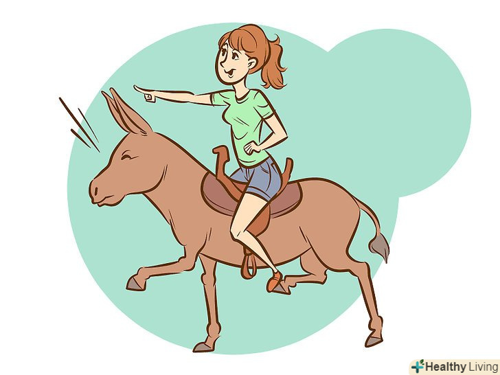 Навчіться віддавати ослу команди. якщо ви ніколи не брали уроки верхової їзди, то варто на них записатися, щоб навчитися правильно віддавати команди ослу для плавного ходу. Головне пам'ятати, що не потрібно намагатися змусити осла робити те, що він робити не хоче. Ви повинні м'яко умовити осла рухатися далі, а не застосовувати до нього силу.- Вербальні і невербальні команди, як сигнали руками і дотику, – це найкращий спосіб дати ослу зрозуміти, що ви від нього хочете. [4]