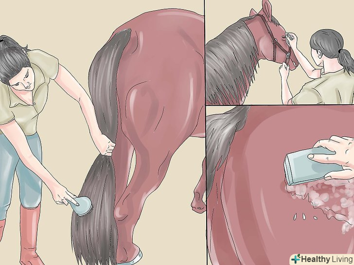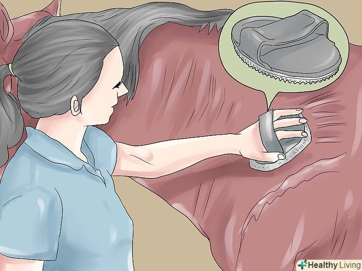 Натріть коня круговими рухами за допомогою щітки каррі; це дозволить видалити бруд і пил.
