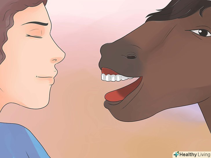 Нюхайте дихання вашої коні. Підгадайте момент, коли можна понюхати дихання коня. Це допоможе вам визначити нормальний запах, щоб згодом розрізняти галітоз (погане дихання).
