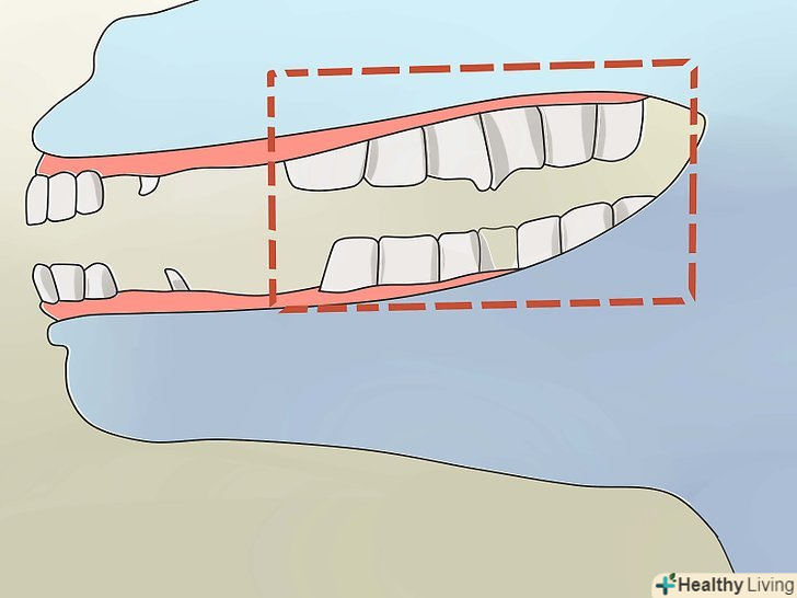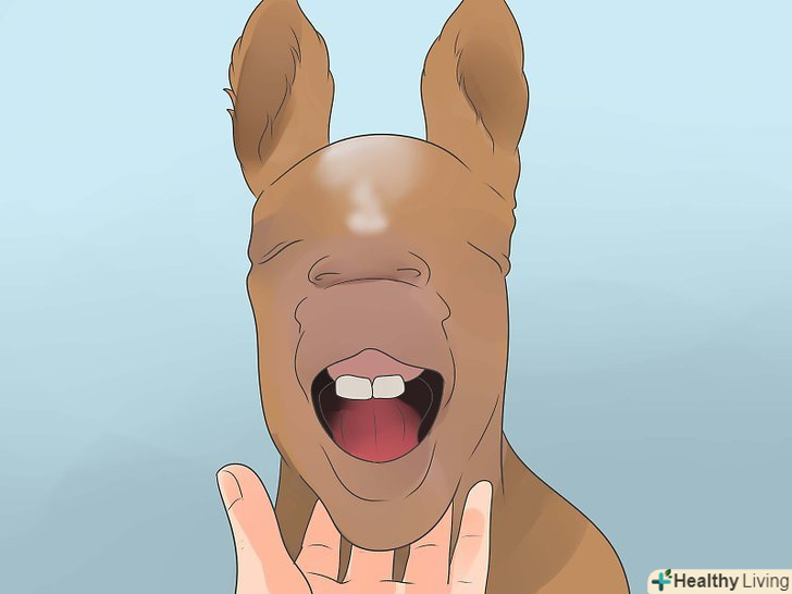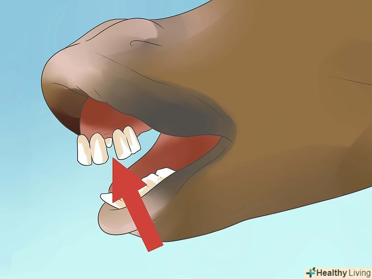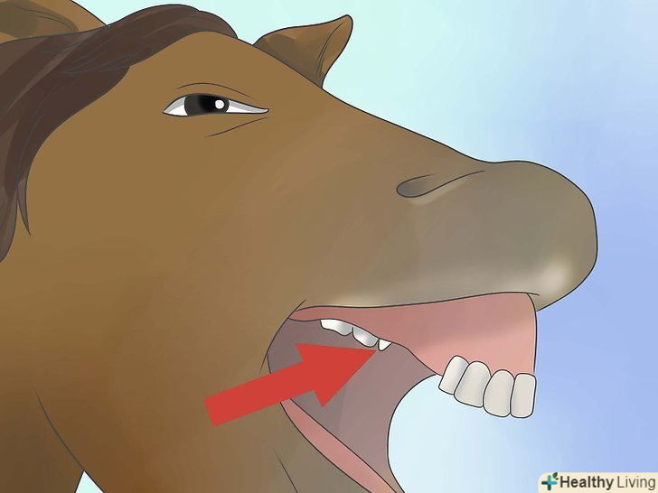 Перевірте проміжок між зубами (діастему). проміжок між різцями спереду і корінними ззаду - цілком нормальне явище. Цей проміжок називається діастема.- У деяких молодих коней виростають великі "вовчі" зуби, або ікла, на цьому місці. Такі зуби, які називаються перші премолярні, починають прорізатися разом зі зрілими зубами і ріжуться 5-12 місяців. [1]