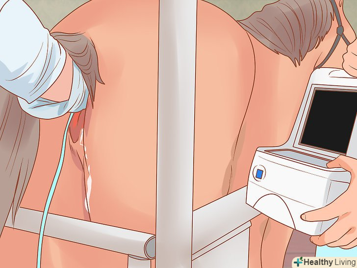 Попросіть ветеринара зробити кобилі УЗД, щоб перевірити її на вагітність. при цьому ветеринар введе в пряму кишку кобили спеціальний датчик, який буде виводити на екран картинку внутрішніх органів, здатну підтвердити або спростувати факт вагітності. Встановити вагітність за допомогою УЗД можна вже з 16-го дня, а на терміні від 55 до 70 днів можна навіть з'ясувати стать лоша. [5]- Під час УЗД за допомогою ультразвукових хвиль на екран виводиться зображення матки кобили, при цьому можна відстежити серцебиття зародка.