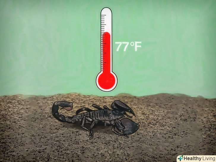 - Скорпіонам не подобається яскраве освітлення, так що Тримайте ваш тераріум далеко від прямих сонячних променів і батареї. Цей вид, особливо, вразливий до впливу ультрафіолетового випромінювання, занадто часто піддавали його в стресовий стан, призведе Скорпіона до смерті. [14]