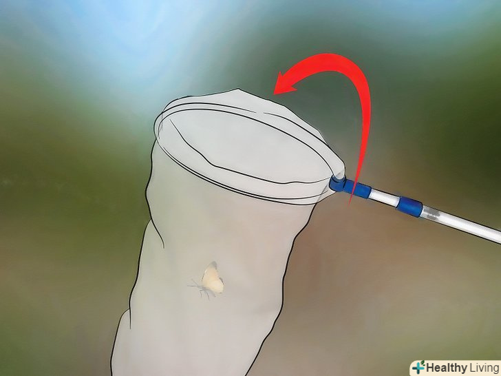 Зігніть сітку. як тільки метелик опиниться в сітці, переверніть сачок, щоб сітка лягла на обід і закрилася. В результаті комаха не зможе вилетіти з сітки. З цієї причини також бажано, щоб сітка була досить довгою — так ви зможете накинути її на обід і при цьому не пошкодити метелика. [9]