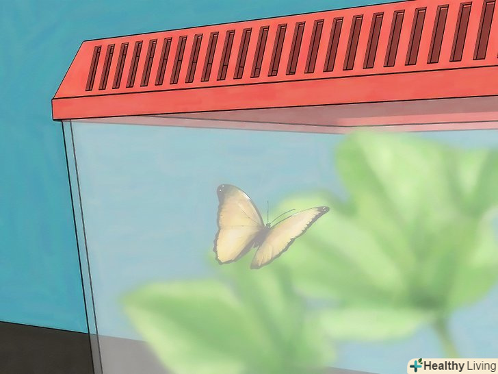 Пересадіть метелика в клітку. якщо ви збираєтеся тримати метелика в неволі, то після повернення додому її слід пересадити в клітку. Найкраще використовувати для метеликів клітини з сіткою або екранами. При цьому метелика слід забезпечити відповідним їй нектаром або водою з цукром. [13]- Краще не використовувати скляну або пластикову клітку, так як метелик не зможе ходити по ній.