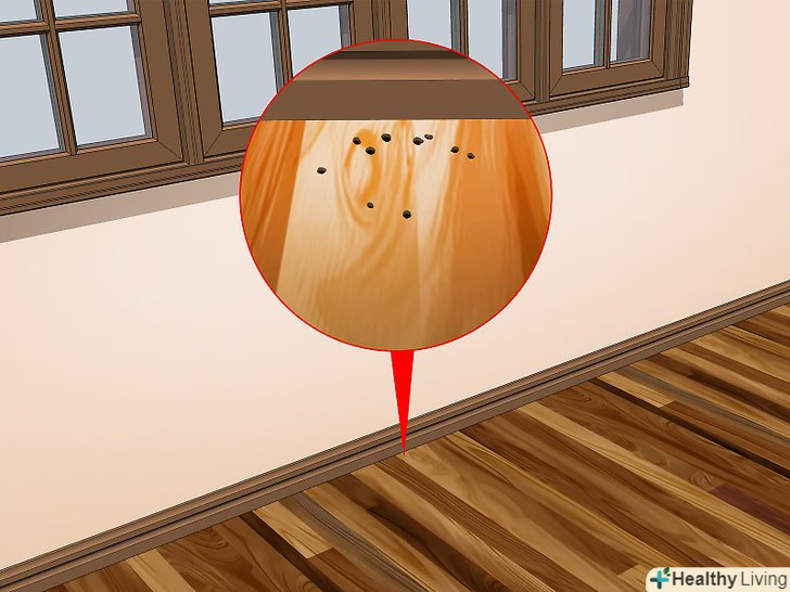Огляньте дерев'яні підлоги. невеликі отвори, залишені короїдом, як правило, можна виявити під підлогою. Почніть свої пошуки вздовж країв підлоги і під вікнами, де дорослі особини схильні літати у напрямку до світла. Незалежно від місця початку зараження, сліди життєдіяльності короїда в кінцевому підсумку з'являться саме в цих місцях. [4]- Хоча короїд віддає перевагу вологим місцям, він здатний вижити і в сухих умовах.