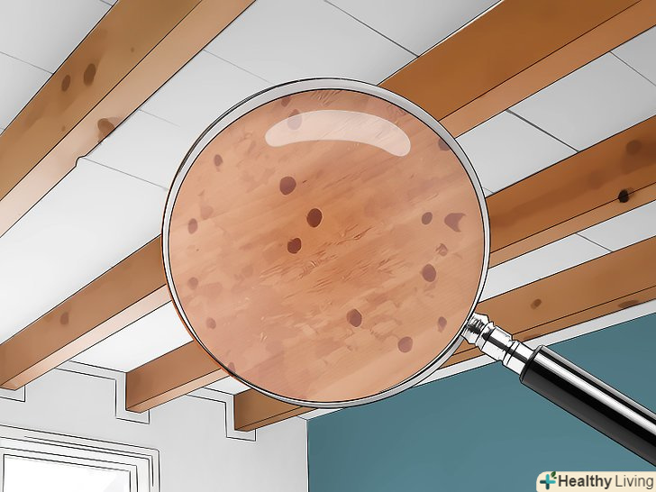 Перевірте дах, стіни та меблі. короїда часто можна знайти в стельових балках, що з часом може привести до серйозних проблем в конструкції. Пошукайте пошкодження, викликані короїдом, в стельових балках, а також в перекриттях навколо оглядового люка. Ретельно огляньте всі балки на даху, до яких можна безпечно дістатися за допомогою драбини або сходів, а також стіни (зокрема, в кутах) і дерев'яні меблі. [5]