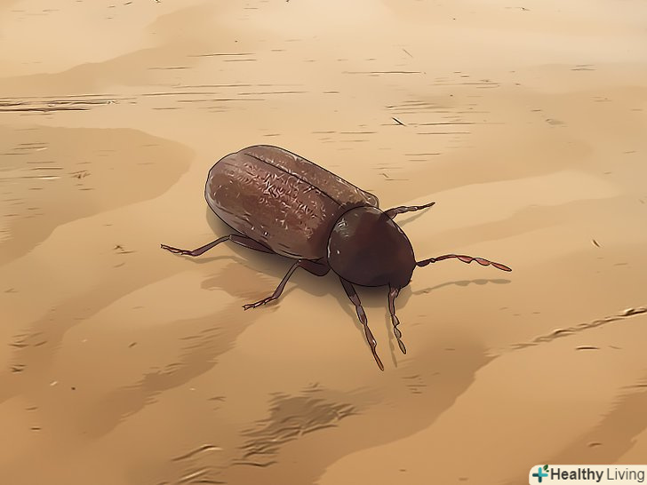 Знайдіть зображення короїда. якщо ви вирішите оглянути будинок у пошуках короїда, спочатку знайдіть в Інтернеті зображення ураженої деревини, щоб знати, що шукати. Якщо вам не вдалося побачити дорослих особин жуків, тоді кращий спосіб визначити наявність короїда - це поглянути на пошкоджену деревину. Найбільш вірогідним винуватцем є меблевий Точильник, який поїдає заболонь твердих і м'яких порід деревини, а також фанеру. Визначити присутність меблевого точильника можна за наявністю вихідних отворів в дереві розміром 1,5-2 мм, коротким тунелям, які простягаються уздовж волокон деревини, а також гранулам, які за формою нагадують лимон і присутні у відходах, залишених комахами в червоточині.- Врахуйте, що пошкодження, які залишають дереву древогризи і які зазвичай можна виявити в місцях зберігання твердої деревини, можна сплутати з ушкодженнями, що залишаються меблевим точильником, тому вам варто вивчити обидва види комах. [2]