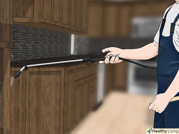 Засновник Parker Eco Pest ControlДізнайтеся у дезінсектора про різні способи обробки, які він буде використовувати. Кріс Паркер, ліцензований фахівець з боротьби з шкідниками, каже наступне: «рідкий спрей можна нанести на необроблену деревину (наприклад, на балки на горищі) оскільки вона все одно його вбере, але він не буде настільки ефективним, якщо нанести його на деревину з обробкою, наприклад, на меблі і підлогу. Щоб обробити ці місця, доведеться провести дезінфекцію затуманенням або обкурюванням будинку. Дезінфекція шляхом затуманення включає в себе виділення концентрованого Хмари засобу проти комах в конкретній кімнаті, в той час як обкурювання включає обробку всього будинку».