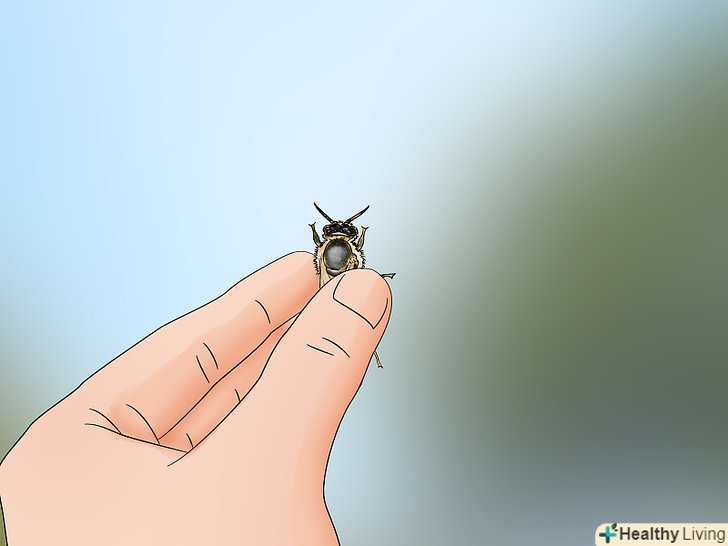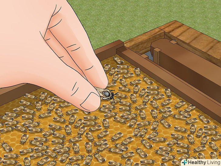 Акуратно підніміть матку за грудний відділ або крильця. обережно візьміть бджолину матку за крильця або грудний відділ. Піднімайте її з граничною обережністю. Якщо матка почне впиратися, можна випадково відірвати їй крила або навіть розчавити її. [10]- На деяких пасіках продають Набори для маркування бджіл, в які входить невелика пластикова коробочка для розміщення матки під час маркування, але її можна і не купувати.