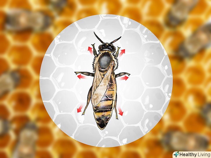 Знайдіть бджолу з розчепіреними лапками. у робочих бджіл і трутнів лапки знаходяться прямо під тільцем. Їх практично не видно, якщо дивитися на бджіл зверху. Оскільки у бджолиної матки лапки розчепірені, їх дуже добре видно. [3]