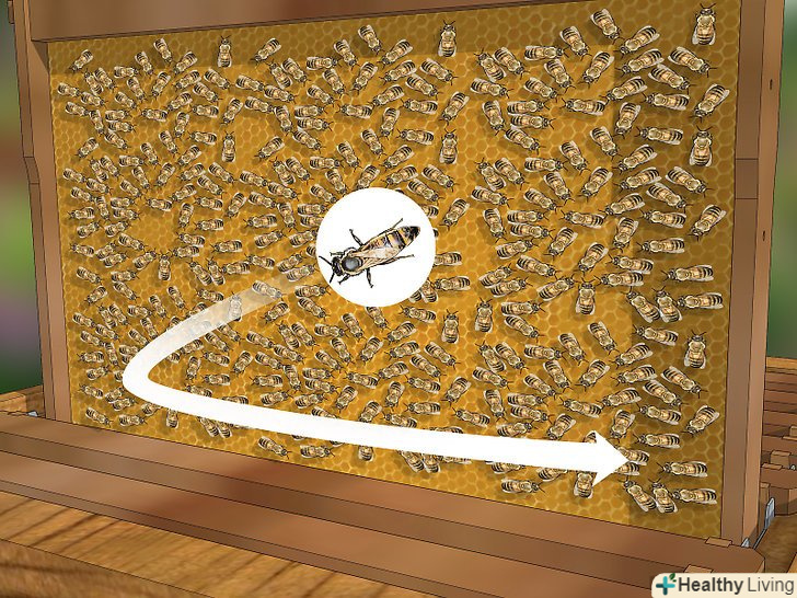 Зверніть увагу на те, коли бджоли розступаються. робочі бджоли і трутні завжди розступаються, щоб звільнити шлях королеві. Коли вона пройде, бджоли зберуться на тому місці, де вона була. Зверніть увагу на бджіл, які розступаються перед іншою бджолою. [6]