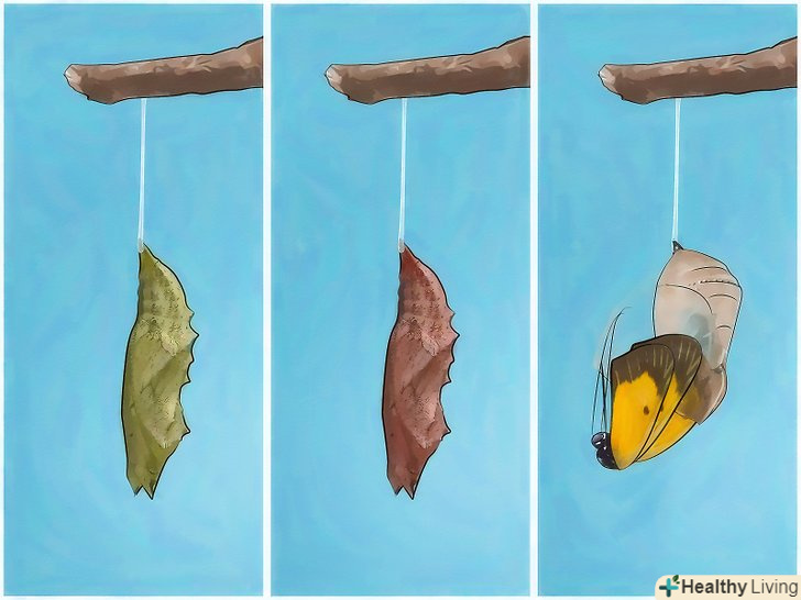 Напередодні появи метелика ви помітите, що кокон поміняв колір. якщо забарвлення кокона змінилася, це означає, що з нього скоро з'явиться метелик. Лялечки деяких видів темніють, інші стають прозорими, в залежності від того, яка метелик знаходиться всередині. [22]- Якщо колір кокона змінився, метелик з'явиться на світ протягом одного-двох днів.