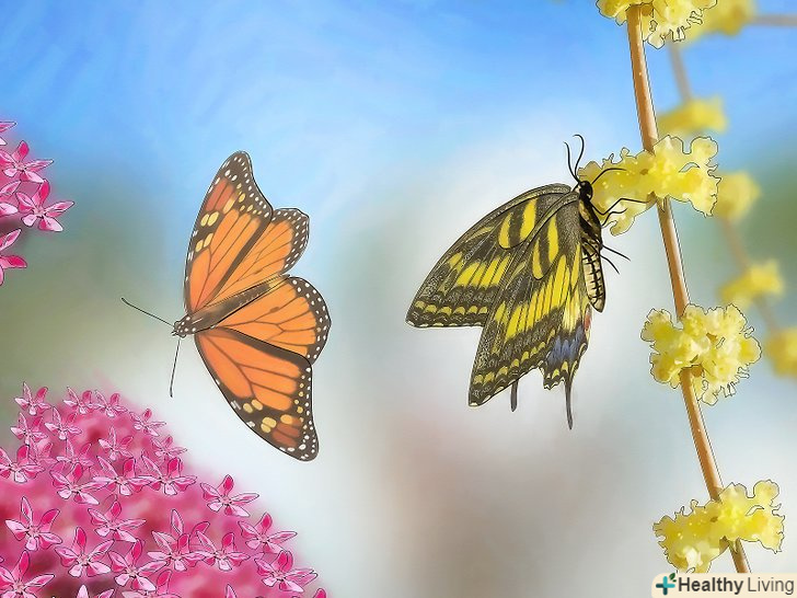 Забезпечте метелика їжею. у деяких метеликів і метеликів шлунково-кишковий тракт відсутній. Тривалість життя таких метеликів становить всього кілька діб. Інші можуть харчуватися; таких метеликів треба погодувати. Якщо ваша метелик здатна харчуватися, забезпечте її листям рослини-господаря. [23]- Можливо, ви вирішите випустити свою метелика на волю, щоб вона могла знайти собі пару.
