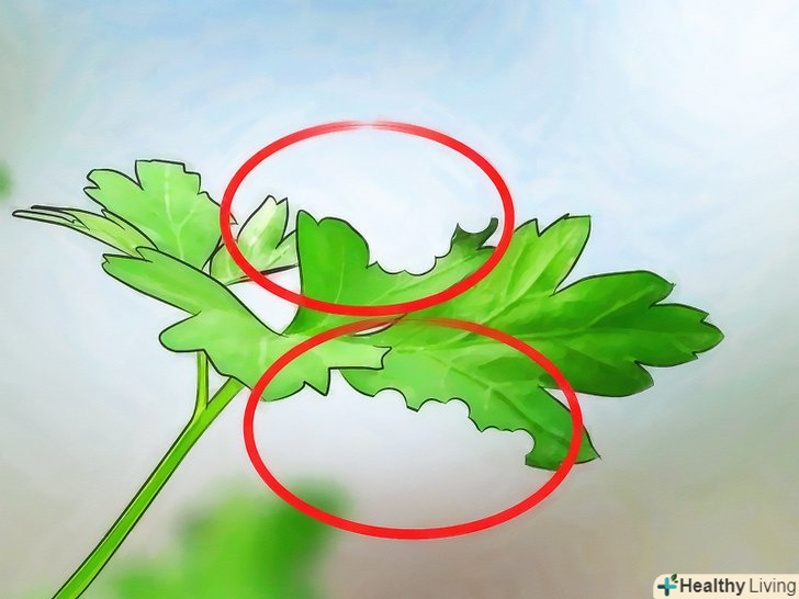 Шукайте листя зі слідами пошкоджень. помітити гусеницю серед листя буває непросто. Гусениці використовують мімікрію, тобто маскуються під середовище свого проживання, щоб їх не помітили хижаки. Один із способів знайти рослину, на якому є гусениці — пошукати сліди пошкоджень на листках, якими вони недавно поласували. [10]- Різні гусениці залишають на листках різні пошкодження, тому важливо знати, як виглядає лист, пошкоджений гусеницею того виду, який ви шукаєте.