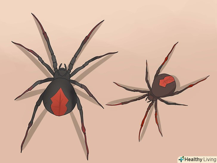 Зверніть увагу на забарвлення павука.- Дорослі самки будуть вугільно-чорного кольору з червоною плямою на черевці.