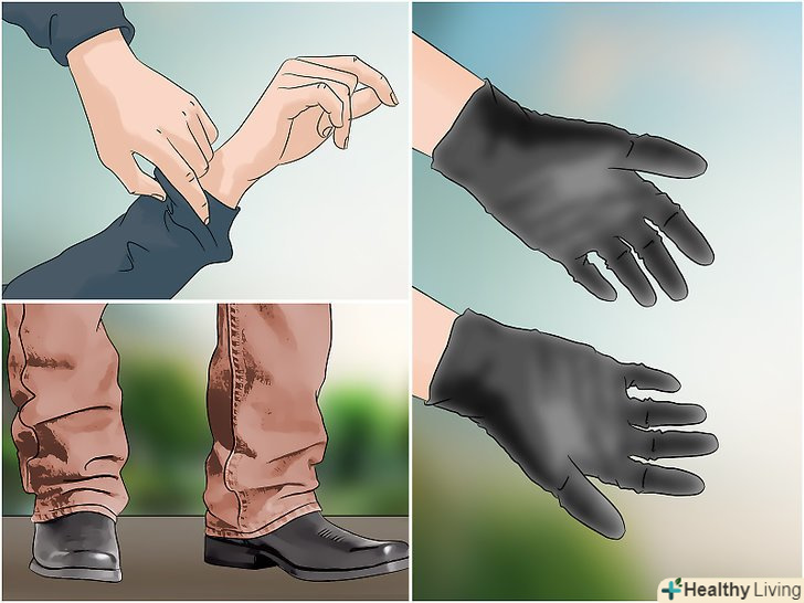 Захистіть себе. якщо ви збираєтеся в місцевість, де була помічена Чорна вдова, надіньте захисний одяг. Одягніть рукавички, одяг з довгими рукавами, штани і взуття з закритим носком. Це знизить ймовірність укусу. [15]- Покладіть засіб від комах в кишеню штанів або сорочки. Це відлякає павуків і не дасть їм наблизитися до вас.