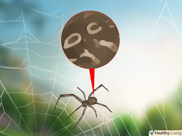 Погляньте на округлість черевця. у чорної вдови повне закруглене черевце, яке кріпиться безпосередньо до грудного відділу, за задньою парою лапок. Черевце такого ж кольору, що і голова. На черевці чорної вдови можна знайти характерні мітки. [10]- У самців черевце набагато менше, ніж у самок.