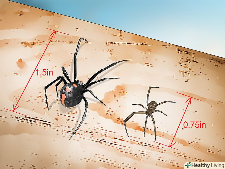 Оцініть розміри павука. Чорна вдова є відносно невеликим павуком. Самка чорної вдови має 3,8 см в довжину, включаючи лапки. Довжина тільця становить приблизно 1,27 см. [9]- Самці менше самок і досягають 1,9 см в довжину, включаючи лапки.