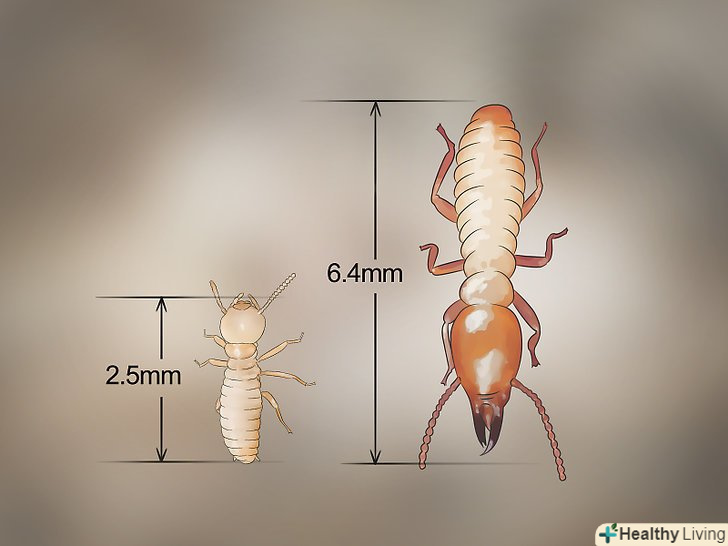 Виміряйте їх. Довжина більшості личинок термітів не перевищує 2,5 мм.для порівняння — доросла робоча особина зазвичай виростає до 6,4 мм. деякі репродуктивні особини, яких ще називають «крилатими», можуть виростати до 13 мм. більші особини можуть не належати сімейству термітів. [4]- Розмір личинок приблизно відповідає розміру яєць, з яких вони вилуплюються. Ці яйця дуже маленькі і пофарбовані в білий колір. Їх досить важко знайти, оскільки вони весь час знаходяться в глибині колонії. Проте, якщо ви знайдете кілька особин біля купки яєць, спробуйте порівняти їх розміри. Якщо ті будуть збігатися, значить, Ви знайшли личинок. [5]