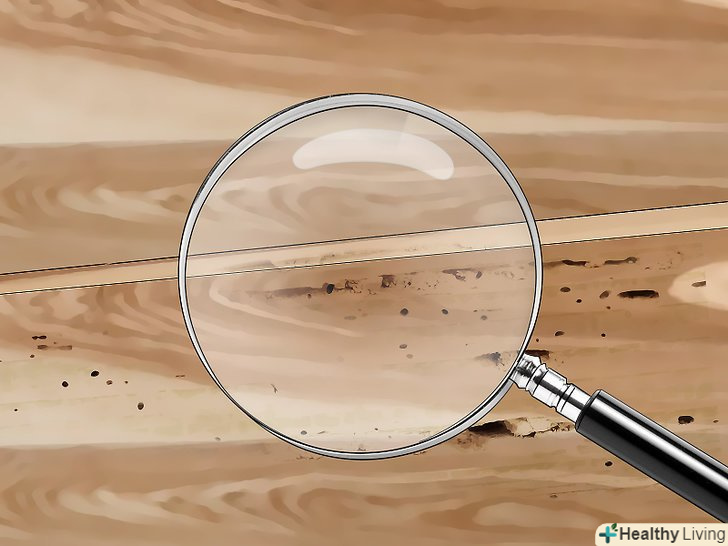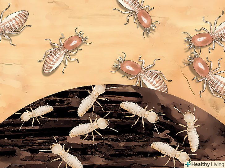 З'ясуйте, чи не була деревина пошкоджена жуками. терміти - не єдині комахи, які харчуються деревиною. Зовні древогризи сильно відрізняються від термітів. У них темніші і більш тверді тіла, які можуть бути покриті дрібними волосками. Личинки древогризов мають біле забарвлення і С-подібну форму. А ще їх спини усівають крихітні шипи. [12]- Щоб точно визначити, яке з цих комах (деревогризи або терміти) вас турбує, найміть дезінсектора. Дезінсектор здатний ідентифікувати шкідника за характером заподіяної їм шкоди.