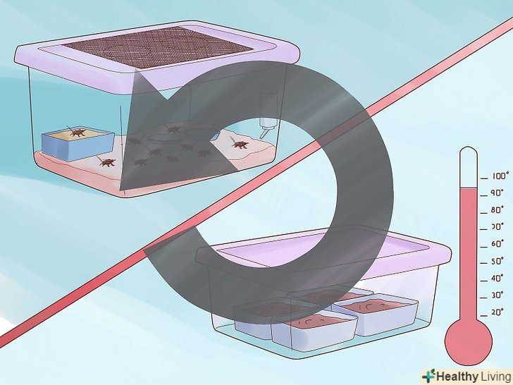 Обігрівайте ваших цвіркунів. Хороший Обігрів потрібен цвіркунам, щоб повноцінно розмножуватися і інкубувати яйця. Ви можете забезпечити їм тепло декількома способами, такими, як обігрівач для рептилій, термоковрик або лампа. Нагрівач, поміщений всередину контейнера, буде обігрівати його вміст разом з вашими цвіркунами і забезпечить достатньо тепла для інкубації яєць.- Самці цвіркунів співають при температурі 12-37 °С, коли вони готові до спаровування. Найкраще цвіркуни себе почувають ближче до верхньої межі цього діапазону: 26-32 °с.